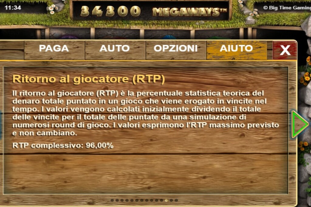 Per accedere a queste informazioni, basta cliccare su simboli come l’icona “i” (informazioni) o un ingranaggio che rappresenta le impostazioni. In questa sezione si trovano anche indicazioni utili sulla volatilità, sulle combinazioni vincenti e sul funzionamento dei giri bonus. Va ricordato che, in molti casi, per reperire questi dati, alcune piattaforme richiedono la registrazione. Più avanti vedremo in quali è necessaria e in quali no.