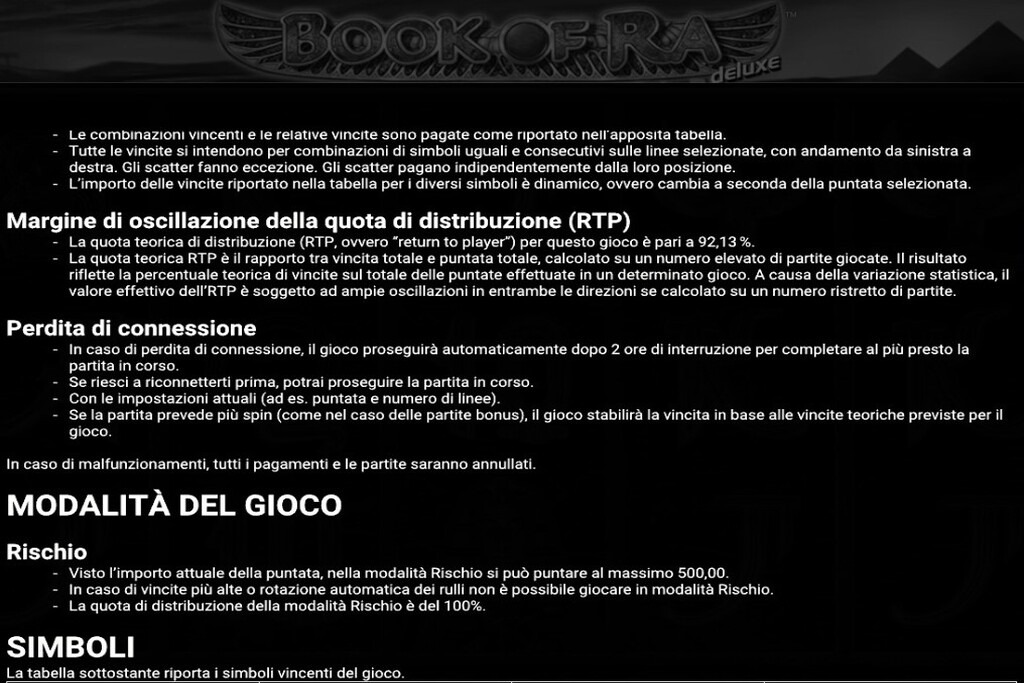 Molte sale virtuali rispettano normative severe che le obbligano a fornire informazioni dettagliate sui game offerti, comprese le percentuali di payout. Questi valori sono spesso visibili nella sezione “Termini e Condizioni” o nelle descrizioni dettagliate dei giochi disponibili sulla piattaforma. Anche questo metodo è corretto, ma è sconsigliato, poiché molti utenti potrebbero confondersi con la lista delle vincite mensili delle macchinette, che non corrisponde al dato che ci interessa.